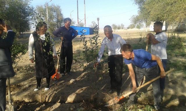 мұғалімі Нұрғали Мұхит Темірұлы мектеп ауласына өзінің бастамасымен 40 түп алма