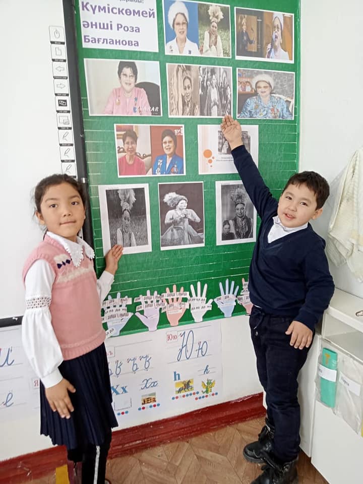 Саттар Естемесов атындағы орта мектебінде 1"ә"сынып оқушыларына сынып жетекшісі Құдагелдиева Г "Күміс көмей әнші Роза Бағланова"тақырыбында тәрбие сағатын өткізді. Жас бүлдіршіндер қазақ өнерінің жұлдызы Роза апайдың өнерімен танысты.