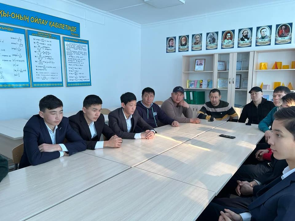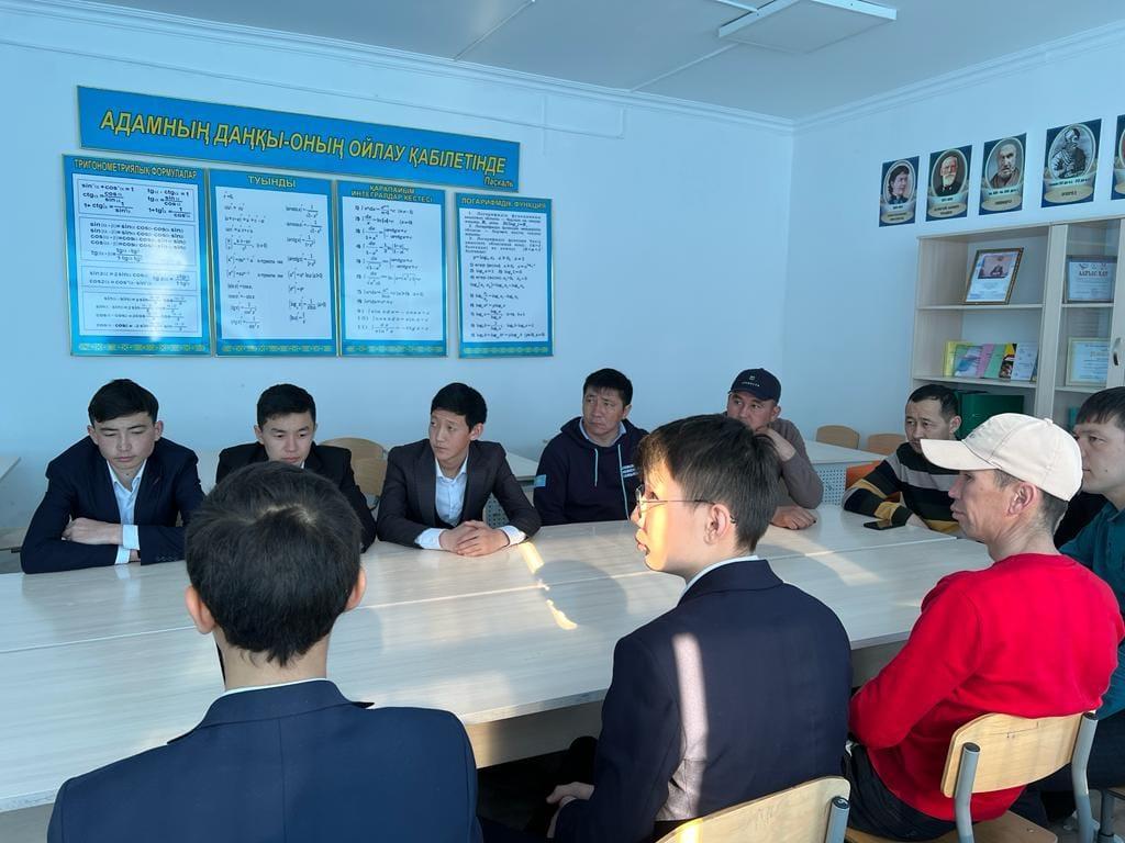 Алдибаев Аян,Кезенбаев Мансұр,Алжанов Иманжүсіп,Меделбаев Мади,Өміршиев Рашид, Қондыбаев Марат, Кеншінбаев Ринат шақыртылды.Түлектеріміз өздерінің оқушы кездеріндегі жылы естеліктерімен бөлісті.Білім алушыларымызға ақылдарын айтып,бастысы жан-жақты болуға шақырды.Білім алушыларымыз түлектерімізге түрлі сұрақтарын қойып,толыққанды жауаптарын алды.Түлекпен кездесу кешінде директордың тәрбие ісі жөніндегі орынбасары Н.Шильдебаева құттықтау сөз сөйлеп, «Туған елге тағзым ету парызым, туған жерге қызмет ету қарызым» дейтін жомарт жандар үшін «Жомарт түлек» жобасы игі бастама екенін айтып, бүгінгі күні мектебімізден қаншама түлектер өз орындарын тауып, әр салада қызмет істеп жүрген, білікті мамандар болғанын қуанышпен жеткізді. Сөз соңында келген түлектерге алғысын білдірді