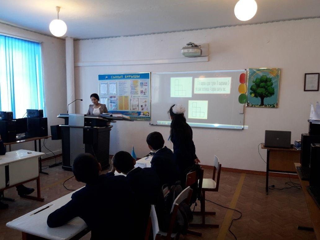 «Квадрат теңдеуге келтірілетін теңдеулері» атты ашық сабағын өткізді. 8"а" сыныптың оқушылары 3 топқа бөлініп жарысты. Сайыс 6 турдан тұрды. Әр турда қызықты тапсырмалар бере отырып сайысты қызықты өткізді.