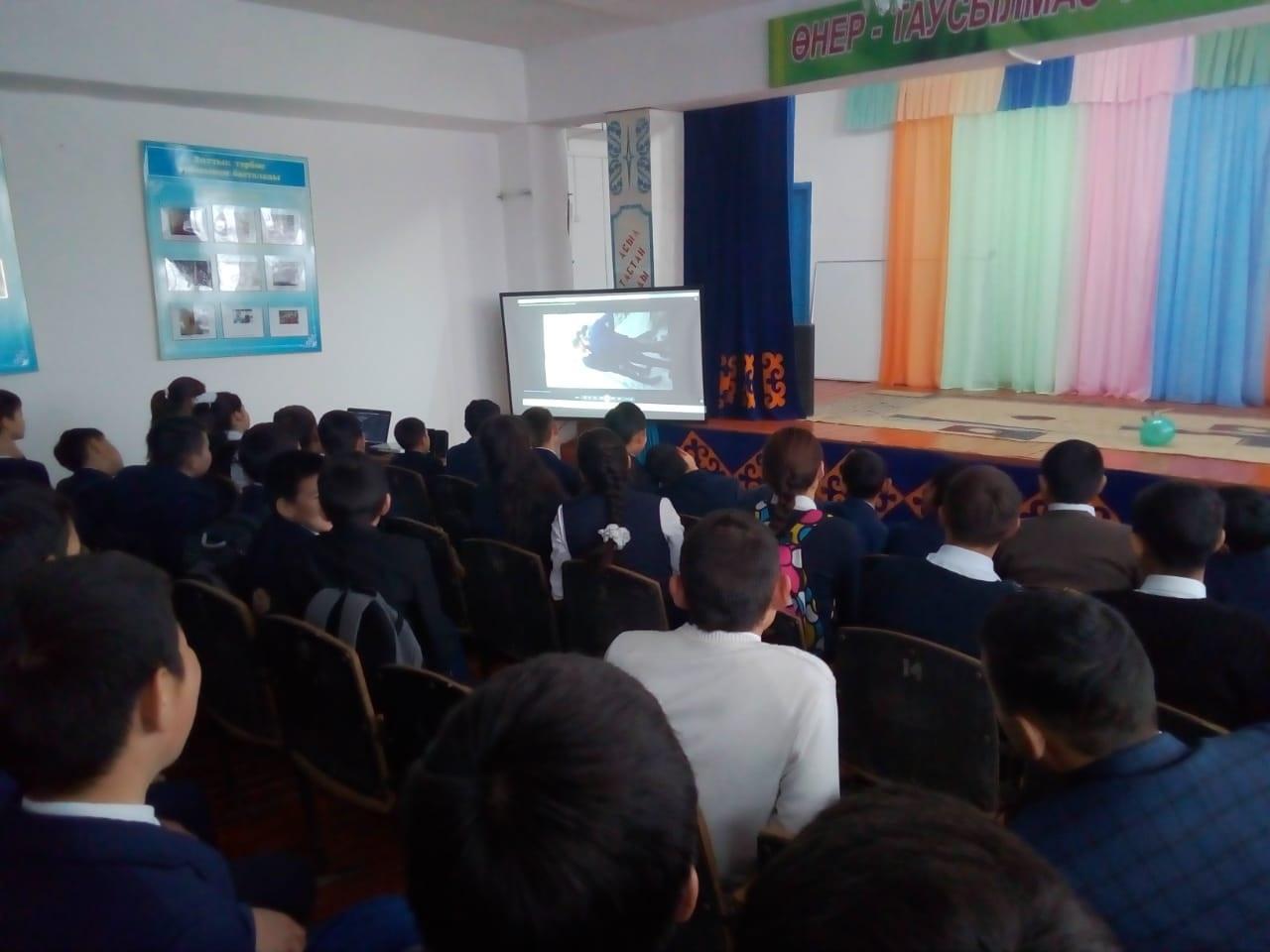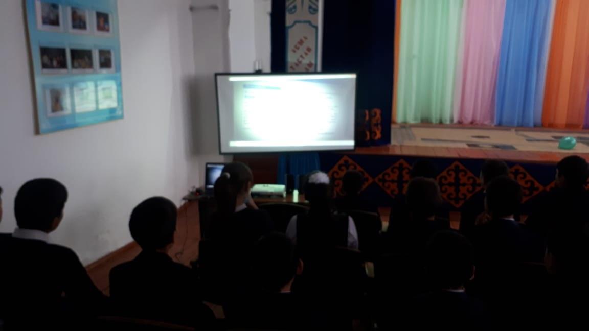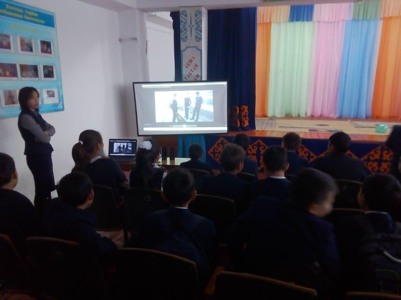 Криминогенді жағдайдың және кәмелет жасына толмағандар арасындағы қылмыс және құқықбұзышылықтың алдын-алу, сондай-ақ оқушылар арасында формальді емес топ басшыларын және бопсалау фактілерін болдырмау мақсатында 7-11сыныптар арасында бейне роликтер көрсетілді.. Қатысқан оқушы саны: 110 оқушы (жүз он). Бейне көрсетілімнен кейін мұғалімдер оқушыларға құқықтық тәрбиеге байланысты сөз қозғады. Оқушылар өз ойларымен бөлісті.