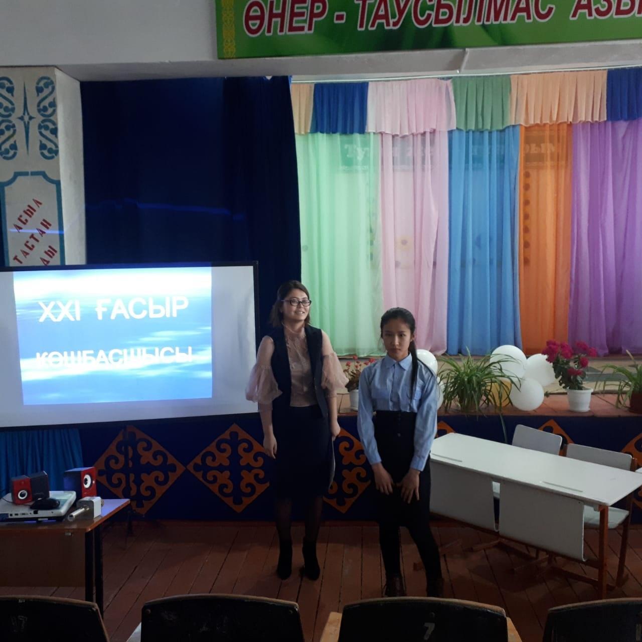 Сағат 15°°-де 9-10 сыныптар арасында «ХХІ ғасыр көшбасшысы» интелектуалды ойыны өтті. Бұл ойын оқушылардың ойларын шыңдап, логикалық қабілетін арттыру мақсатында өткізілді. Ойын 5 кезеңнен тұрды:Бәйге,Тіл өнері, Жорға,Тікелей сұрақ, жасырын ұяшық.