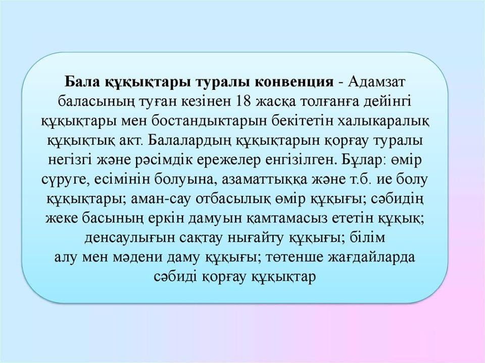 Саттар Естемесов атындағы шағын орталықты орта мектебінің 8-11 сынып оқушыларына қашықтықтан оқыту жүйесі бойынша «Менің құқықтарым» атты сабақ өткізілді. Қазақстан Республикасындағы баланың негізгі құқықтары мен міндеттері туралы жадынамалар, парақшалар және бейнероликтер WhatsApp желісі арқылы таратылды. Мемлекетімізде бала құқығын қорғауда әртүрлі жұмыстар жүргізіліп жатқаны туралы ескертілді.