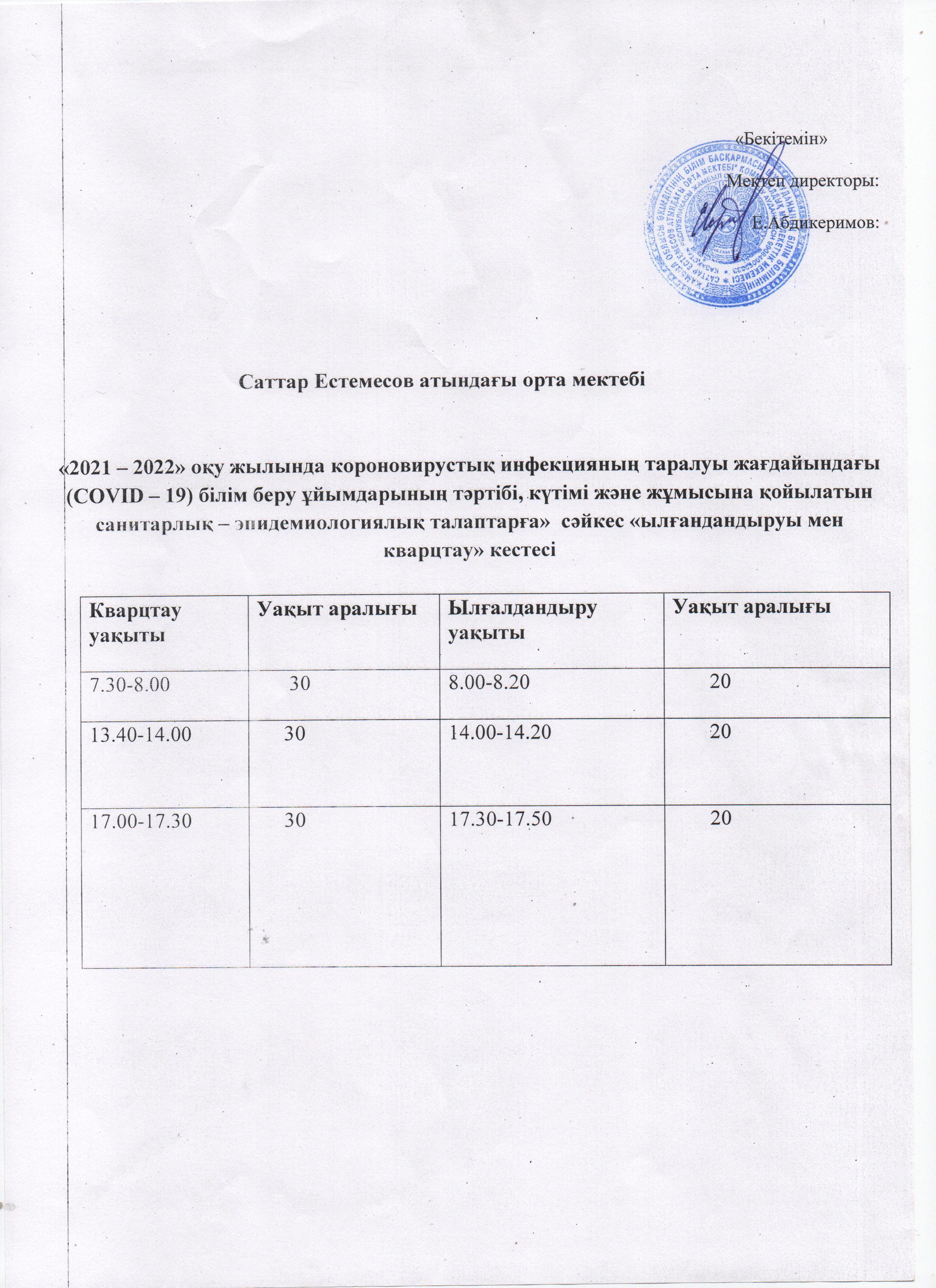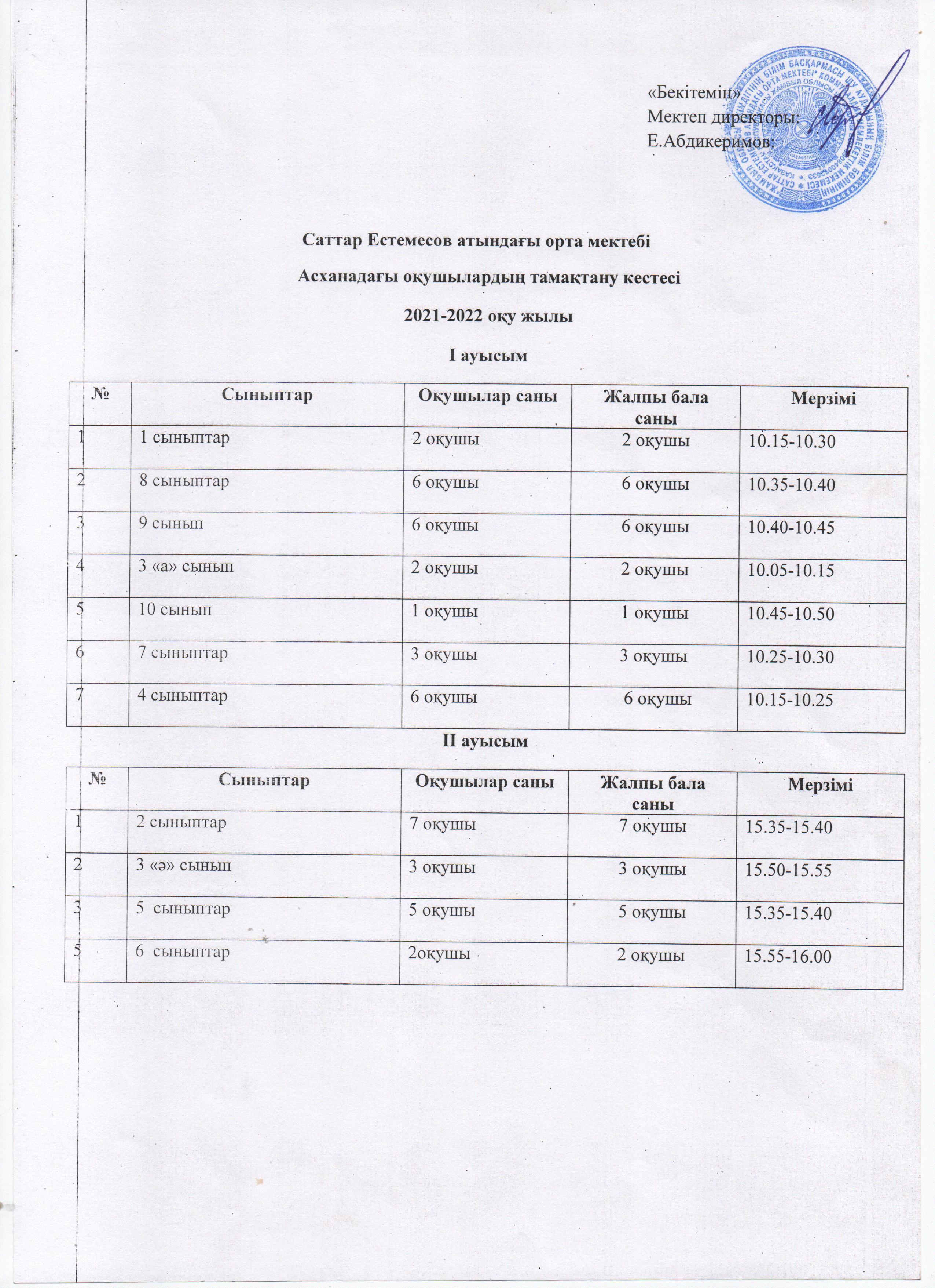 Асхананың жұмыс кестесі » Саттар Естемесов атындағы шағын орталықты орта мектебі