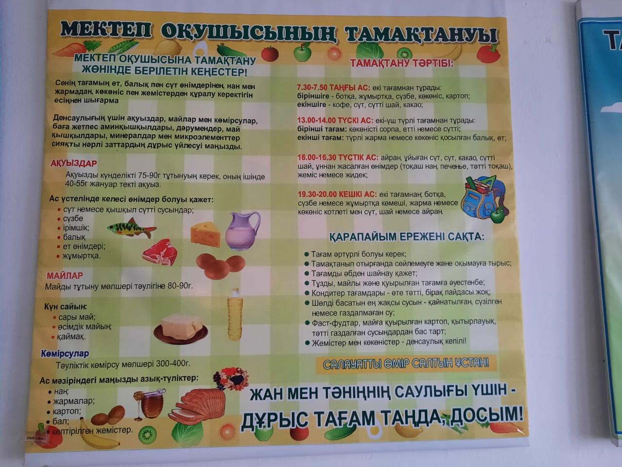 Мектеп асханасы туралы мәлімет » Саттар Естемесов атындағы шағын орталықты орта мектебі
