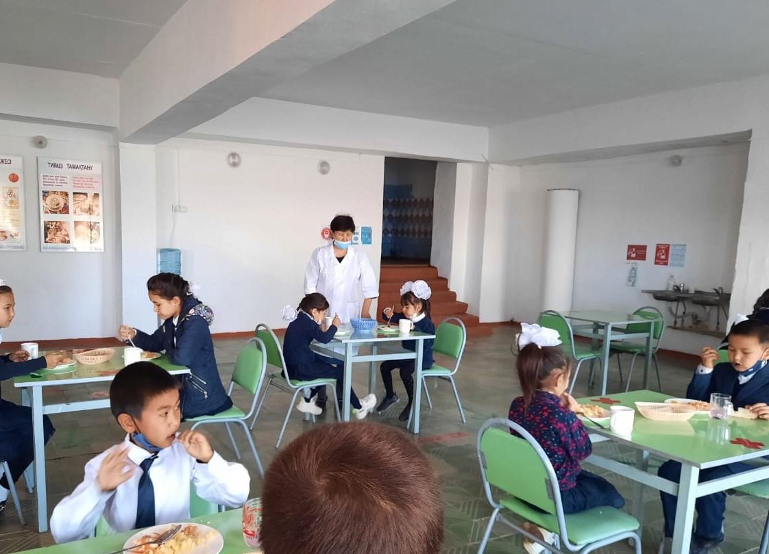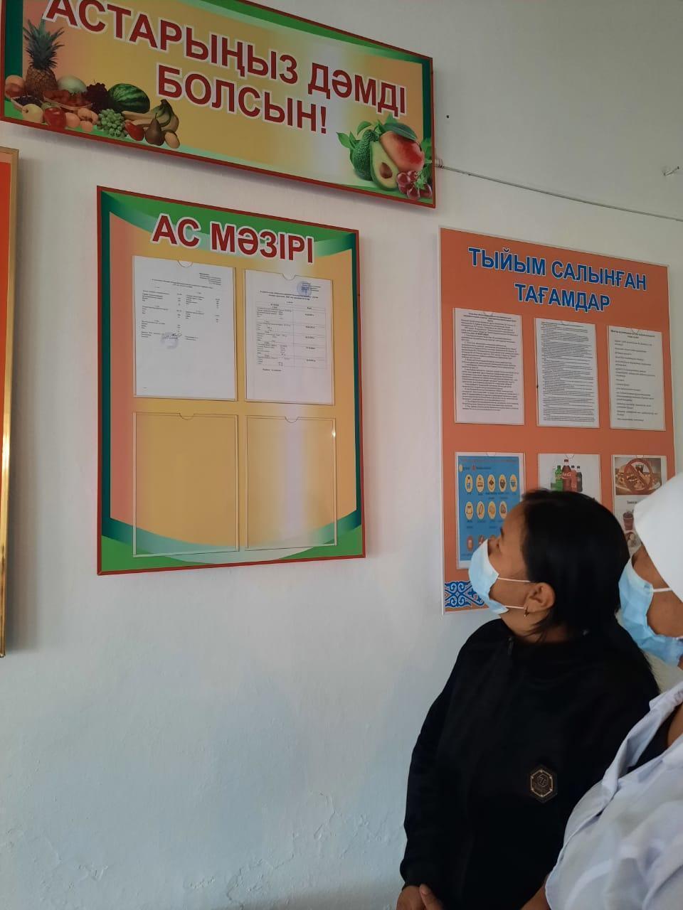 2021-2022 оқу жылының 29 қыркүйегінде директордың тәрбие ісі жөніндегі орынбасары ,әлеуметтік педагог, ата-ана ,мейірбике бірлесе отырып мектеп асханасында оқушыларды ыстық тамақпен қамту жұмысы бойынша Aшық есік күні ұйымдастырылды.Іш шараның мақсаты: аз қамтылған,көп балалы ,жетім ата-анасының қамқорлығынсыз қалған балалардың ыстық тамақпен қамтылуы, дайындалған астың мәзірімен сәйкестігі, оның сапасы,асхананың санитарлық жағдайын анықтау.Мектеп бойынша 43 аз қамтылған оқушы бір мезгіл ыстық тамақпен қамтылуда.Тегін ыстық тамақпен қамту жұмысына жауапты ДТІЖО Ж.Сыдықова ,әлеуметтік педагог А.Қожахметова, мейірбике Р.Ахметова, ата-ана С.Төлеубиева мектеп асханасында балалардың тамақтануымен олардың санитарлық гигиеналық ережені сақтауы,дайындалған ас мәзірінің сапасы , мөлшерінің нормаға сәйкестігі және қол жуатын орнымен таныстырды.Балаларға сол күнгі ас,ас мәзіріне сәйкес тағадар дайындалып берілді.