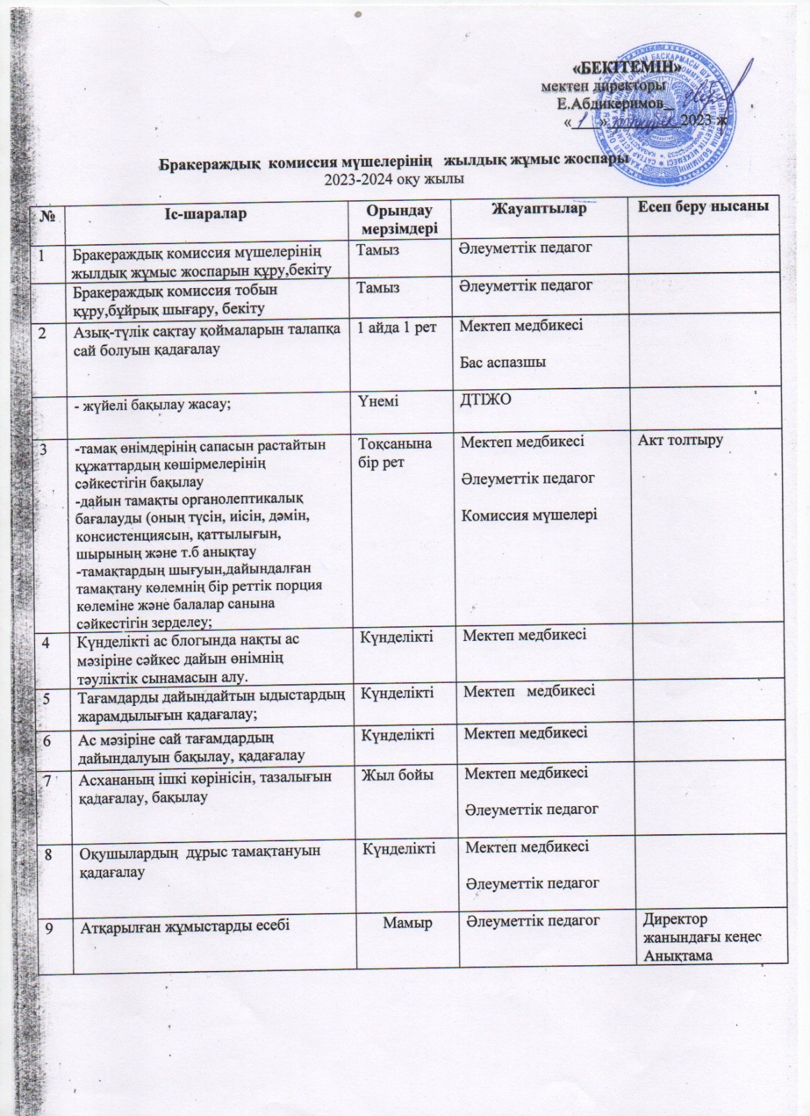 Қабылдау бөлімі :