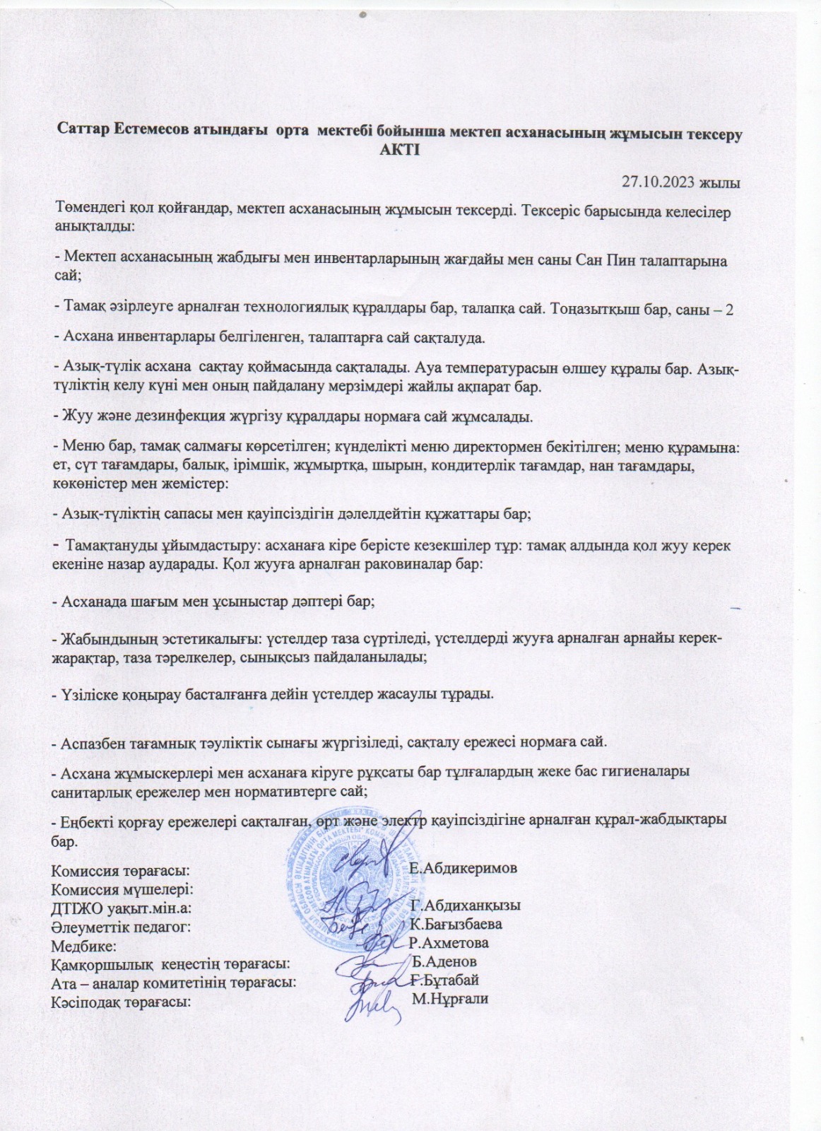 "Саттар Естемесов атындағы орта мектебі"